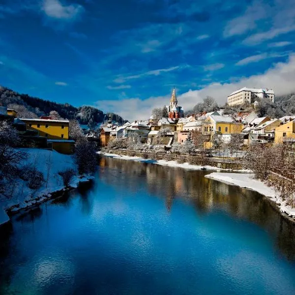 Wohnung Esebeck - Blick auf Altstadt坐落于穆劳,享有山景,提供免费WiFi。这家住宿距离毛特恩多夫城堡有45公里,配备花园和免费私人停车位。 这家度假屋提供阳台,享有市景,拥有1间卧室、起居室、电视、带冰箱和烤箱的设施齐全的厨房以及1间带浴缸的浴室。这家度假屋也配备休息区和1间浴室。 这家度假屋距离尤登堡天文馆有47公里。克拉根福机场距离住宿有81公里。