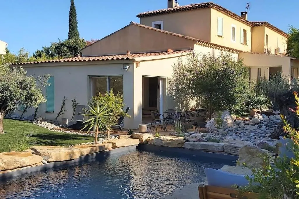 Maison à Aix en provence au pied de la Sainte Victoire位于Beaurecueil,距离圣查尔斯火车站仅有35公里,提供季节性室外泳池、露台和24小时前台。这家自助式别墅配有私人泳池、花园、烧烤设施、免费WiFi和免费私人停车位。 这家别墅配有2间卧室、起居室、带冰箱和咖啡机的设施齐全的厨房以及1间带淋浴设施和吹风机的浴室。