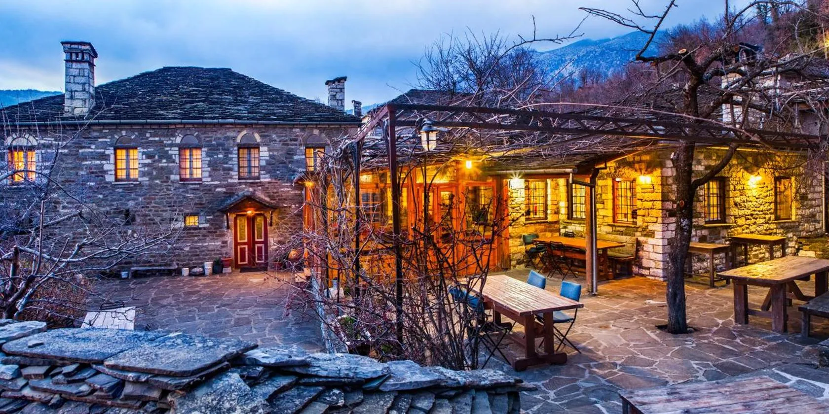 Aristi Mountain Resort sits on the highest point of Aristi village, offering views over the Vikos Gorge and the Towers of Papigo.