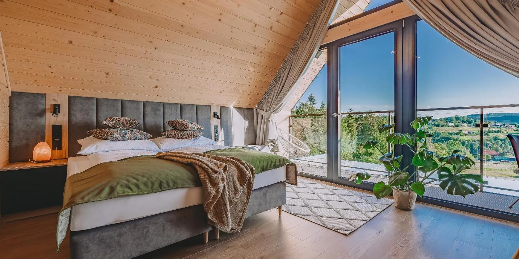Domki Bliżej Natury z Jacuzzi nabízí zahradu, terasu a ubytování s klimatizací, balkonem a bezplatným Wi-Fi. Termální lázně Bania se nachází 30 km odtud. Na místě je k dispozici soukromé parkoviště.